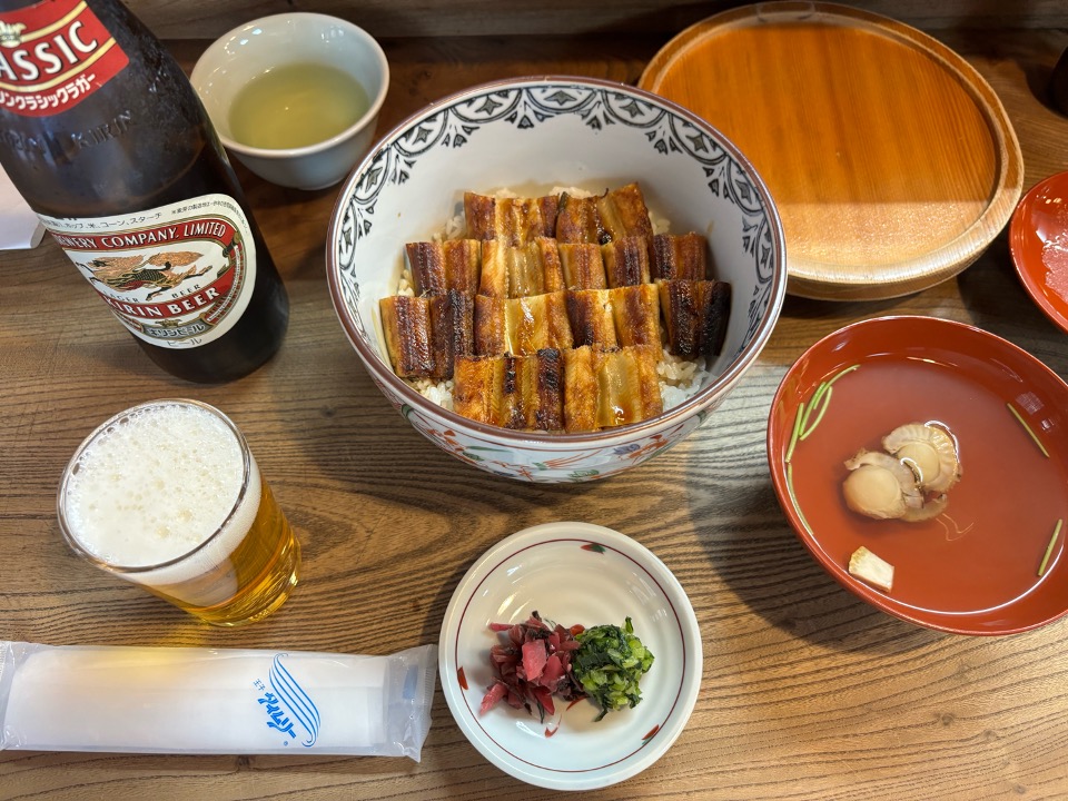 本部長お勧めの名物あなご飯と森田お勧めの瓶ビールは相性抜群でした!^^
